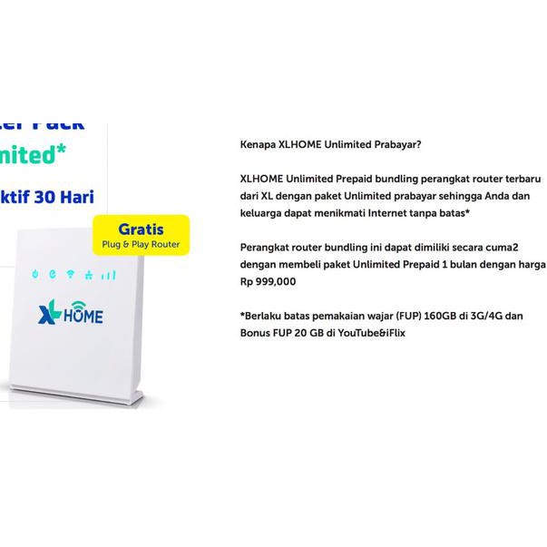 Jika kuota bersama habis sebelum tanggal tagihan, pelanggan dapat tambah kuotanya dengan membeli kuota booster di myxl. Kuota bonus internet 4g berlaku di jaringan 4g xl 5. Memasuki bulan kedua, paket data akan secara otomatis diperpanjang ke xl home basic fup 50 gb dengan catatan, pengguna mempunyai pulsa minimal sebesar rp 199.000. 04.02.2021 · untuk berlangganan xl home unlimited prabayar, pihak xl meminta pengguna untuk mengaktifkan paket 1 bulan seharga rp 999.000 sehingga mendapatkan perangkat router secara gratis. Seperti yang kami singgung diatas, bahwa xl home memiliki daya tarik dari segi harga paket internet yang terjangkau.